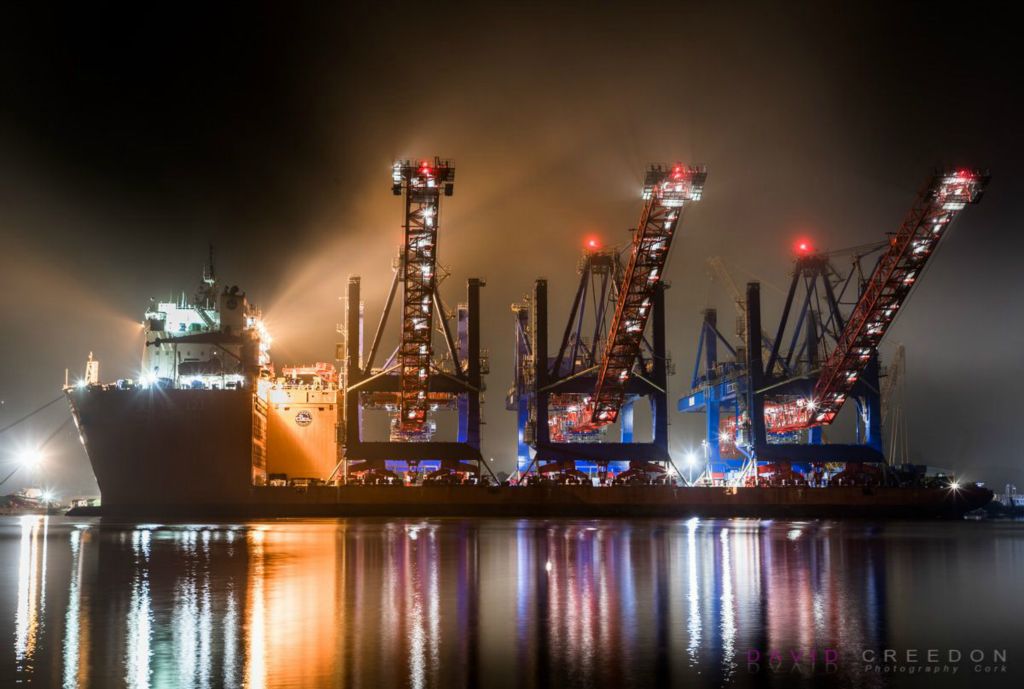 Container Ship Maersk Neston offloading her cargo during the night at the Port of Cork deep-water terminal in Ringaskiddy Co. Cork